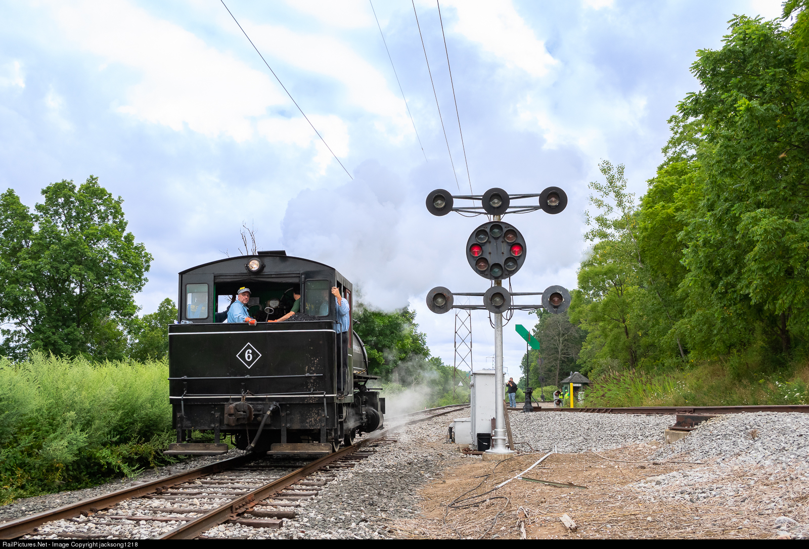 Viscose Company 0-4-0T locomotive number 6 backs down grade and past a B&O Color Position Light signal on its way to lower yard to pick up its excursion consist.