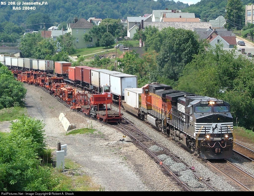 NS 20R passes the idle track equipment stored on the Jeannette siding.