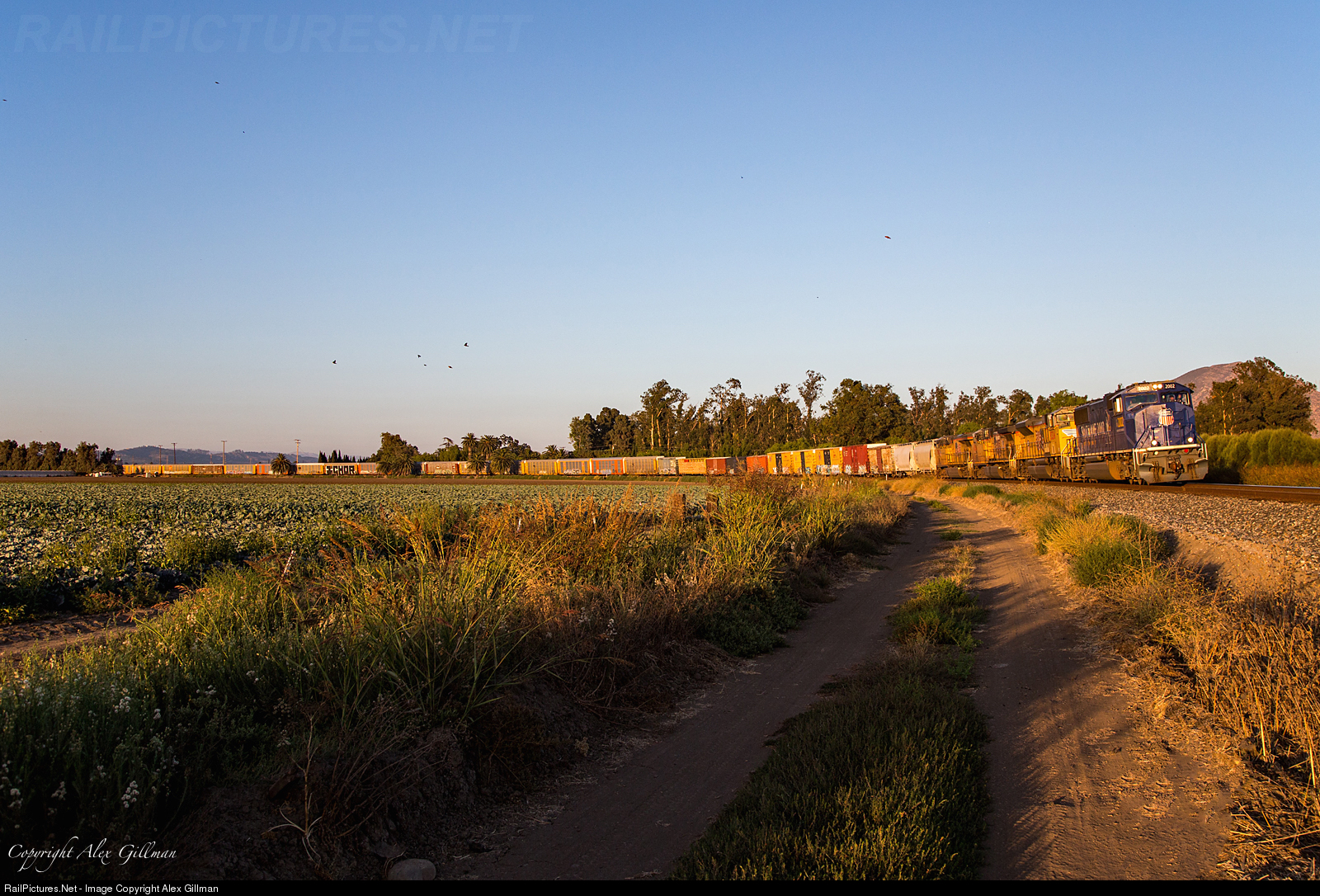 | UP 2002 stretches the LOF67 along the sweeping curve just north of Camarillo in golden light as it closes in on it's next location to perform switching duties- Oxnard. Following the train's departure from Oxnard, it will run up the coast under the cover of darkness and arrive into it's final destination, Guadalupe, in the late hours of the night. |