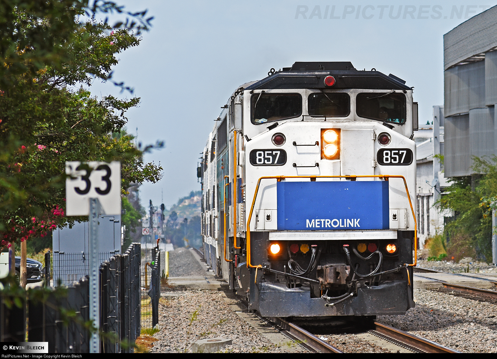 Down to One. Built in 1992, EMD F59PH #857 was one of Metrolink's original locomotives, having been with the Los Angeles commuter railroad since opening day. Since that time, it has seen the railroad evolve from a comparatively small, rush-hour-only operation with three lines to an extensive 500+ mile system with seven lines running (mostly) all day service. It has seen the fleet grow from consisting solely of its sister F59PH units and Bombardier Bilevel coaches to also include F59PHIs, MP36PH-3Cs, and F125s plus Hyundai Rotem cars. It has seen the railroad experience and cope with several high-profile wrecks, particularly the one in Chatsworth, which led to drastic safety changes at the agency, most notably the push to become the first railroad in the U.S. to have Positive Train Control installed on all trains. In 2008, 857 had the honors of leading the Holiday Express Train, visiting stations around the system to spread the holiday spirit. 857 was not one of the seven F59PHs (now F59PHRs) to be chosen by Metrolink to be overhauled in the late 2000s, so it remains an "original" unrebuilt unit. It was also never painted into either the transitional "Metroblank" paint or the newest ribbon paint scheme, remaining in Metrolink's phase 2 paint since the mid-90s (although it has been touched up since).