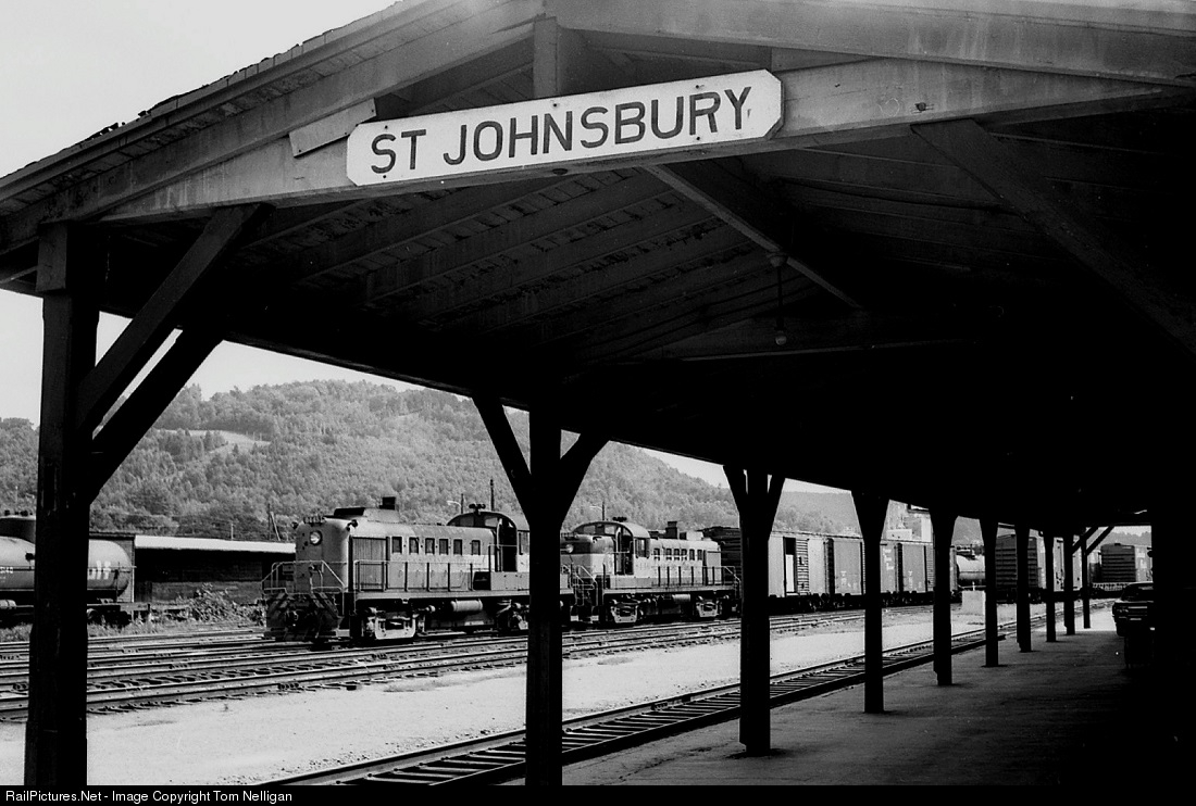 A pair of MLW-built RS3s team up on a Canadian Pacific freight that is about to depart St. Johnsbury, VT, for Newport and Montreal. The massive station here had seen its last passenger train two years earlier.