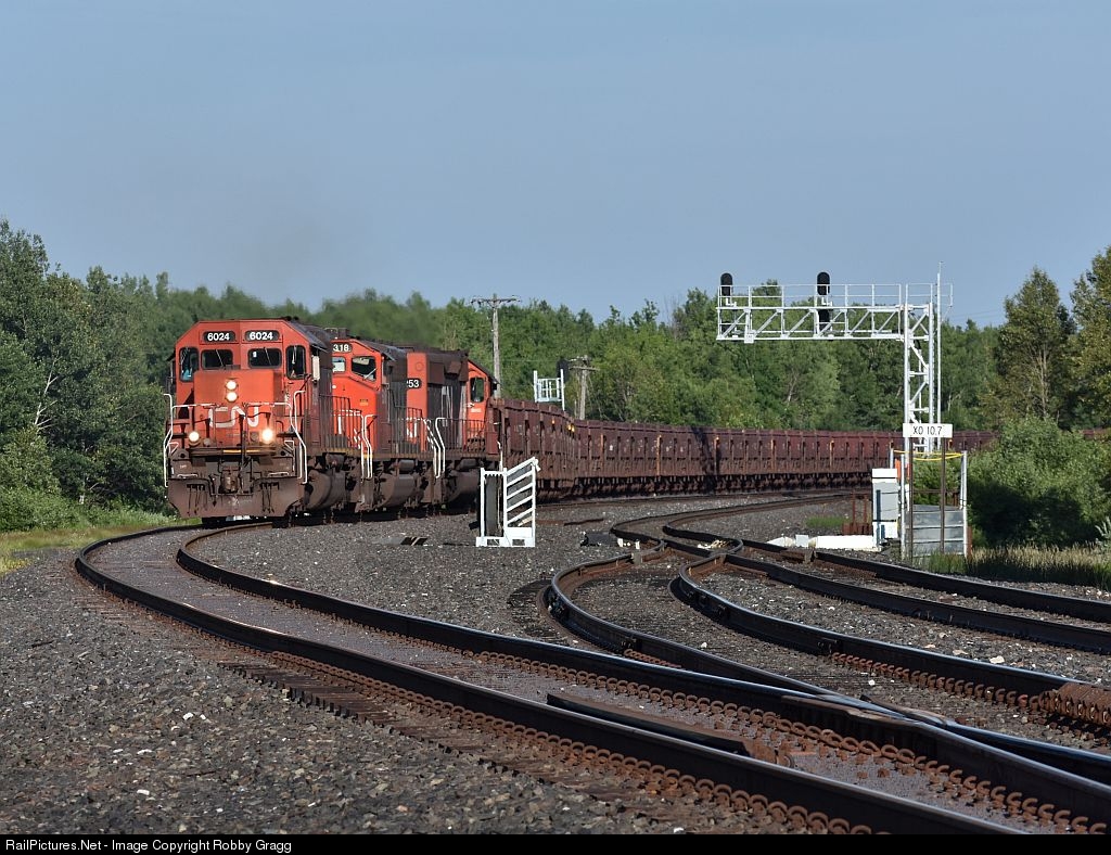 CN SD40u 6024 leads ore empties north through Adolph.