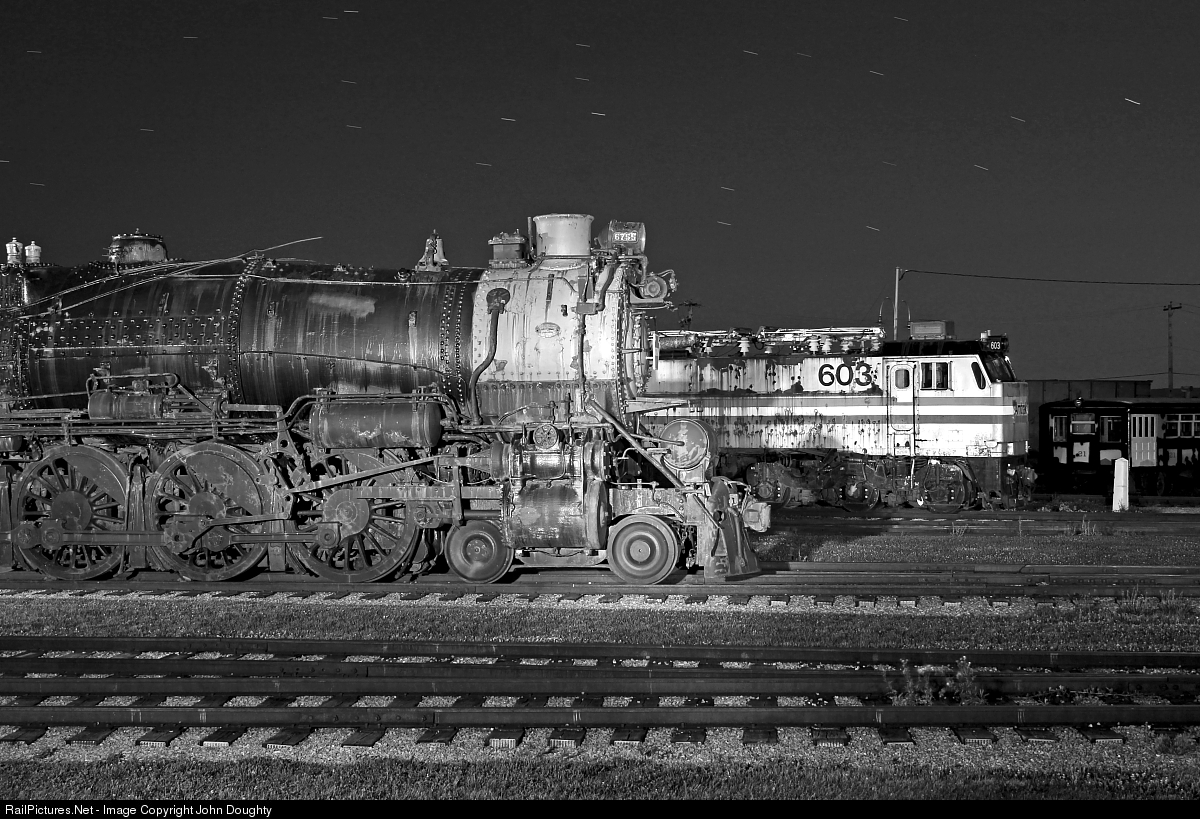 Pennsylvania 6755 and Amtrak 603 rest under the stars at the Railroad Museum of Pennsylvania.