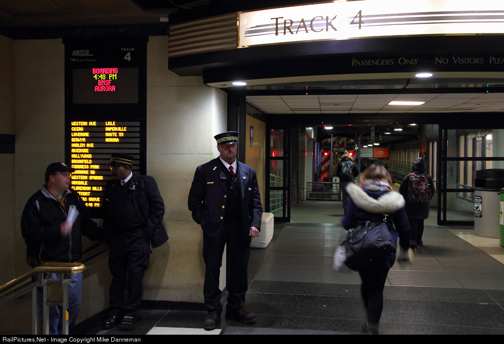 On the afternoon of November 8, 2017, the conductor of a Metra/BNSF commuter train waits for his passengers to arrive and board the train parked on Track 4 at Chicago Union Station.