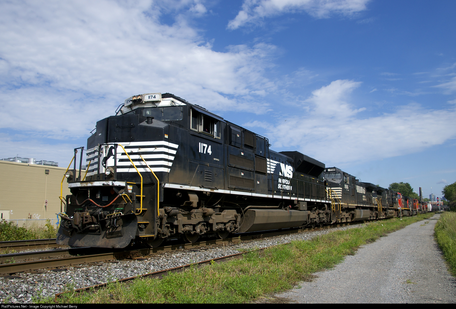 8 units off of 2 trains. CN 527 has 3 NS units off of CN 529 (NS 1174, NS 9566 & NS 9700) and 5 CN units off CN 372 (CN 2583, CN 5715, CN 8948, CN 9639 & CN 5635) as it advances past MP 3.13 of CN's Montreal Sub before backing up as it works at Pointe St-Charles Yard.