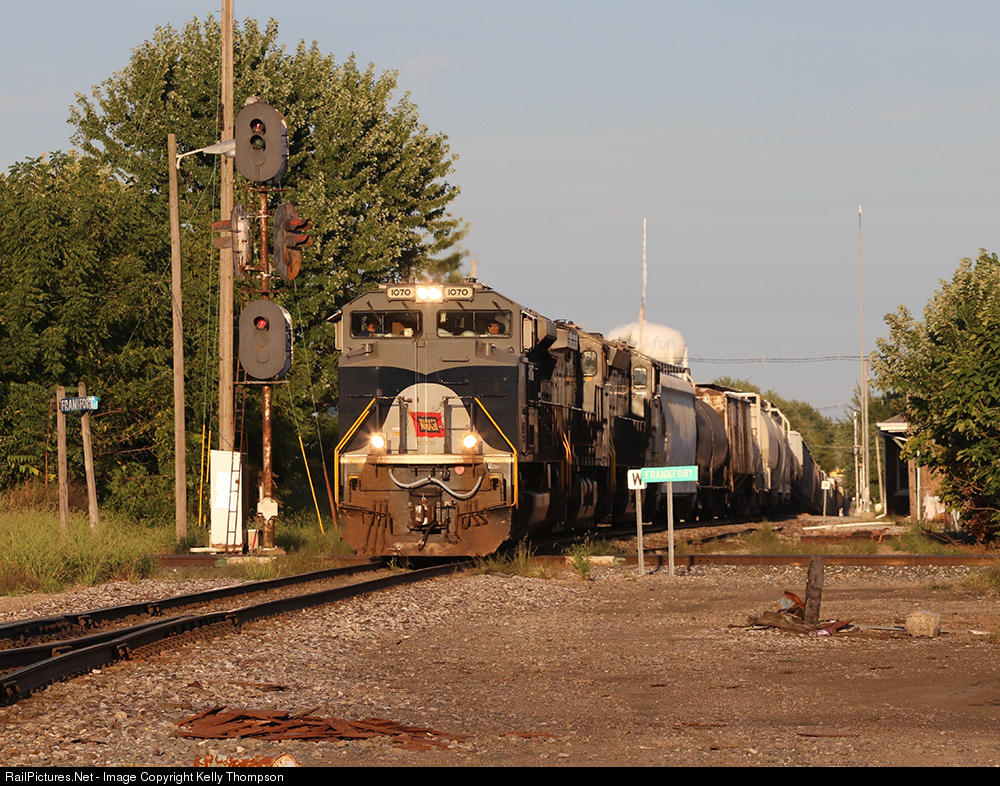 | NS 1070 enters the NS Frankfort Yard limits with 122 in tow as the sun is starting to get lower and lower. Before entering the yard they must pass the ancient NKP signals that guard the old NKP-PRR diamond. Fast forward and CSX owns the PRR. Traffic is low on both lines (2 daily freights on NS, 1 local on CSX) but it's still good to see these signals up! |