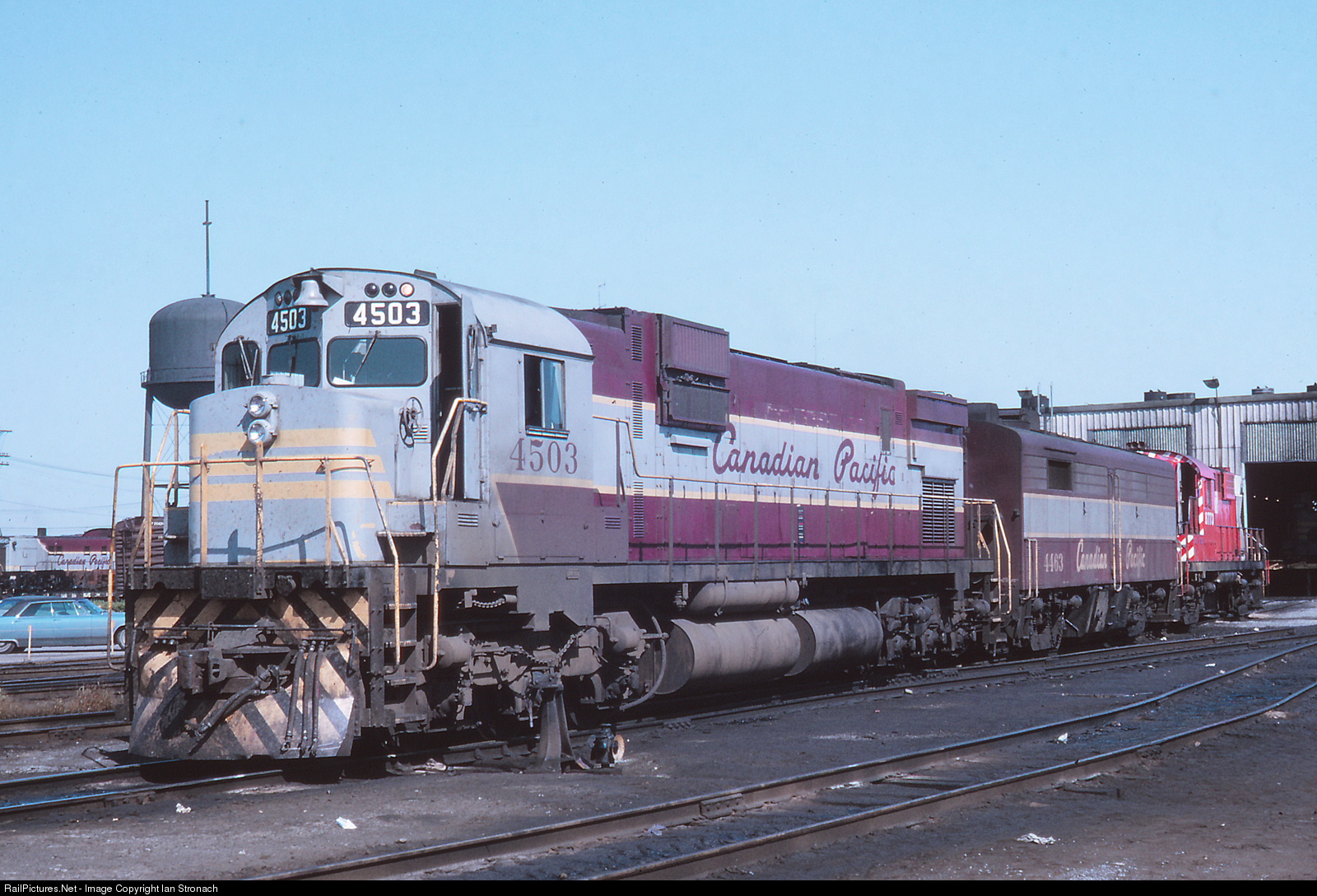 CPR had only one, six-axle Alco/MLW unit, RSD-17 8921, until the arrival of eight, MLW C630M's in 1968. CPR borrowed two, UP Alco C630's in May, 1966 for testing. They were having troubles with the new SD40's and decided to trying the competitor's product. Based on their performance many M630's and M636's would follow. 4503 was just a year old and already looking a little road weary when lashed up with an FB-2 and RS-18 ready to lead a westbound freight from St. Luc.