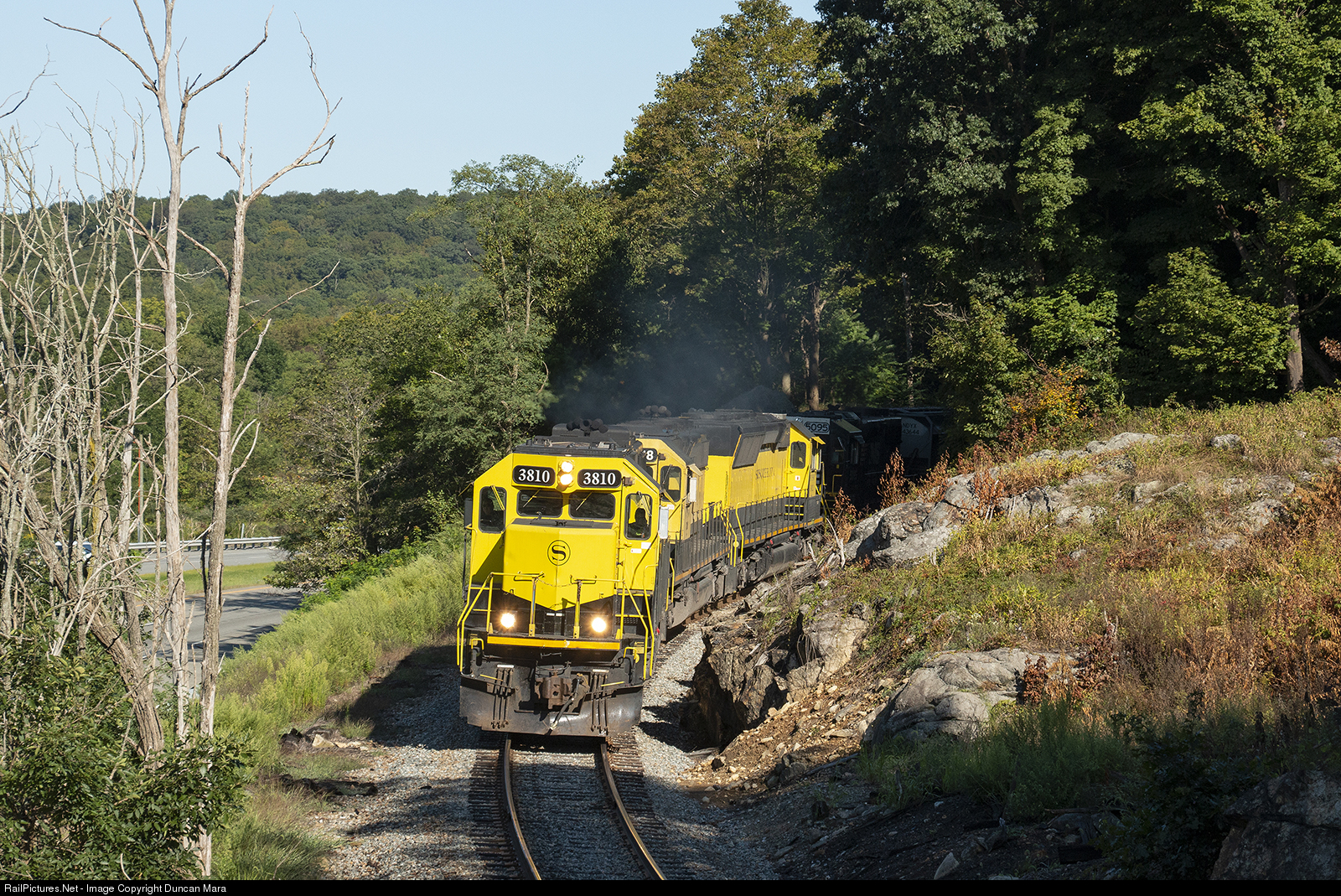NYS&W SU-100 coming down Sparta Mountain on a sunny morning in late August at Oak Ridge along Route 23.