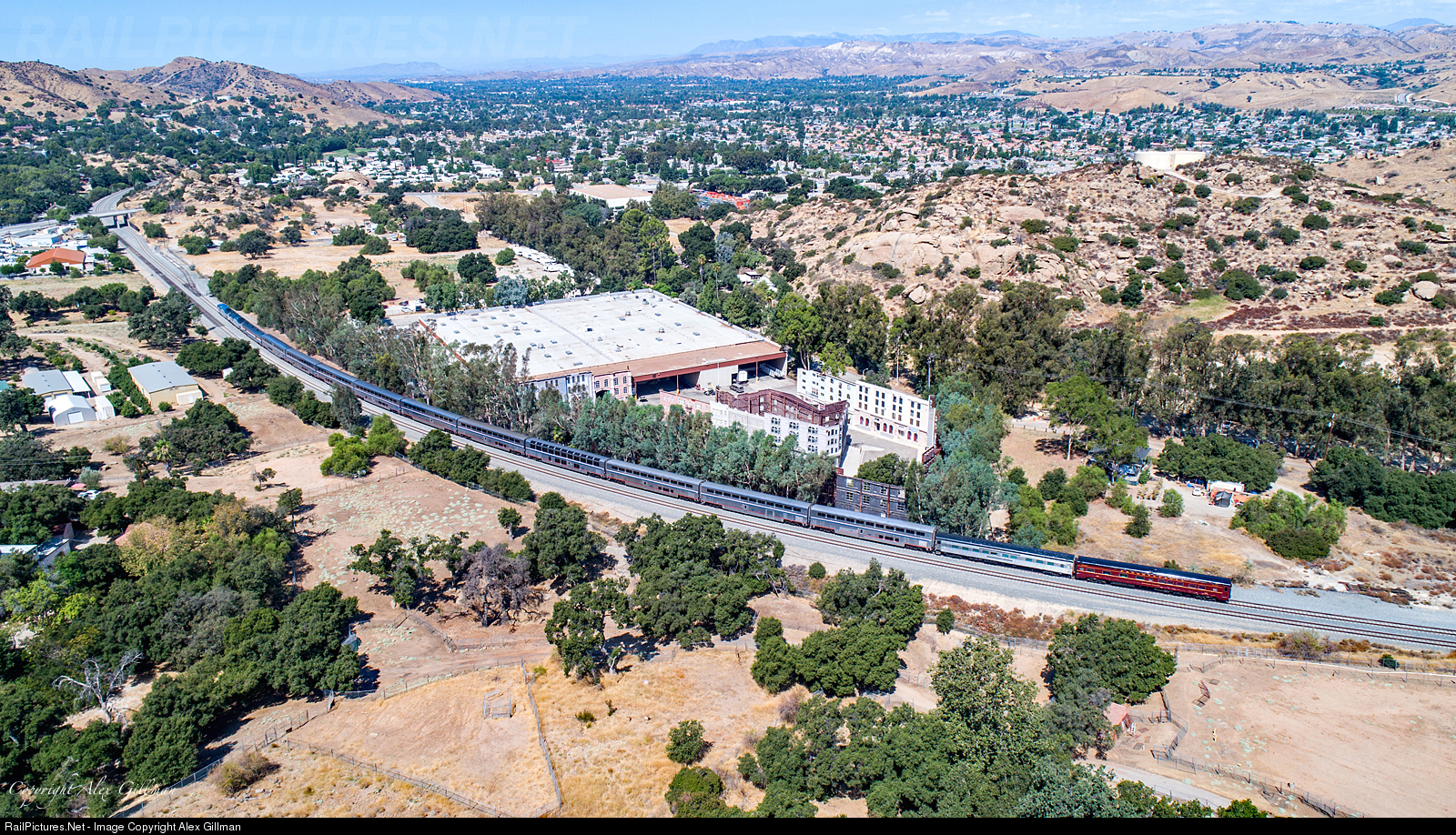 Lights, Camera, Varnish! While the two private cars on the rear of today's Coast Starlight might carry the heritage of the Boston & Main and Pennsylvania Railroad's, both the Salisbury Beach and Colonial Crafts once called Los Angeles home when they were part of the LARail.com family. The two cars, now based in Washington D.C., still return "home" to their first private car residence from time to time like this trip that brought them out west via the Southwest Chief. On this warm, summer morning in Simi Valley, the pair are passing the active Corriganville Movie Ranch - the location of popular movie and TV show filmings such as Fort Apache, Buffalo Bill in Tomahawk Territory, The Robe, The Lone Ranger, The Adventures of Rin Tin Tin, Sky King, Circus Boy, and even Star Trek.
