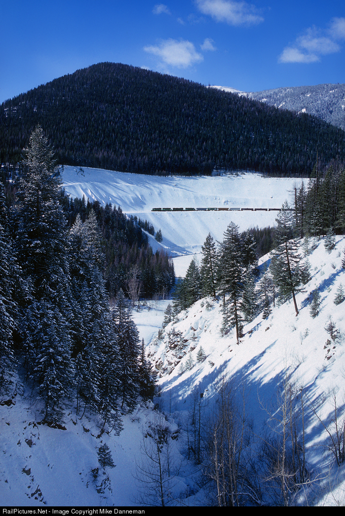 » Java West on Burlington Northern main line over Marias Pass » Java, Montana, USA (more.. ) » March 03, 1989