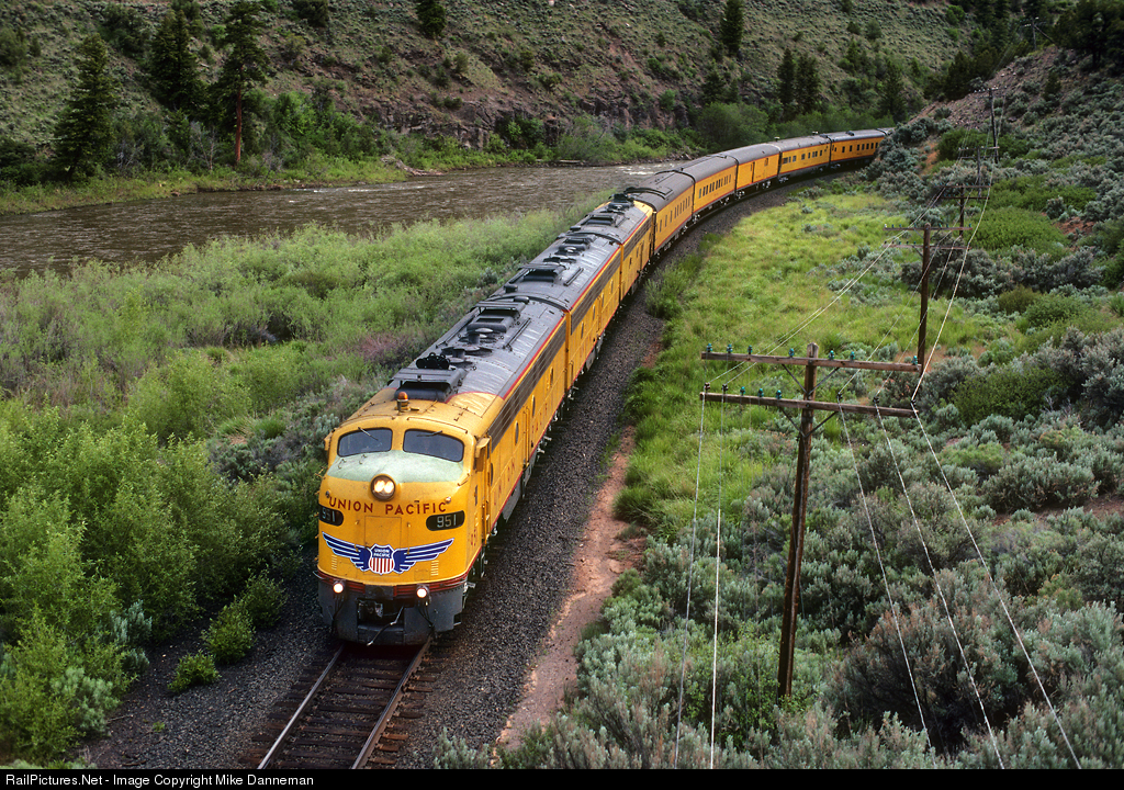 See beautiful diesel locomotives in UP's traditional armour yellow livery and special commemorative paint schemes pulling long trains of yellows cars reminiscent of the days when UP domeliners seemed to go Everywhere West.