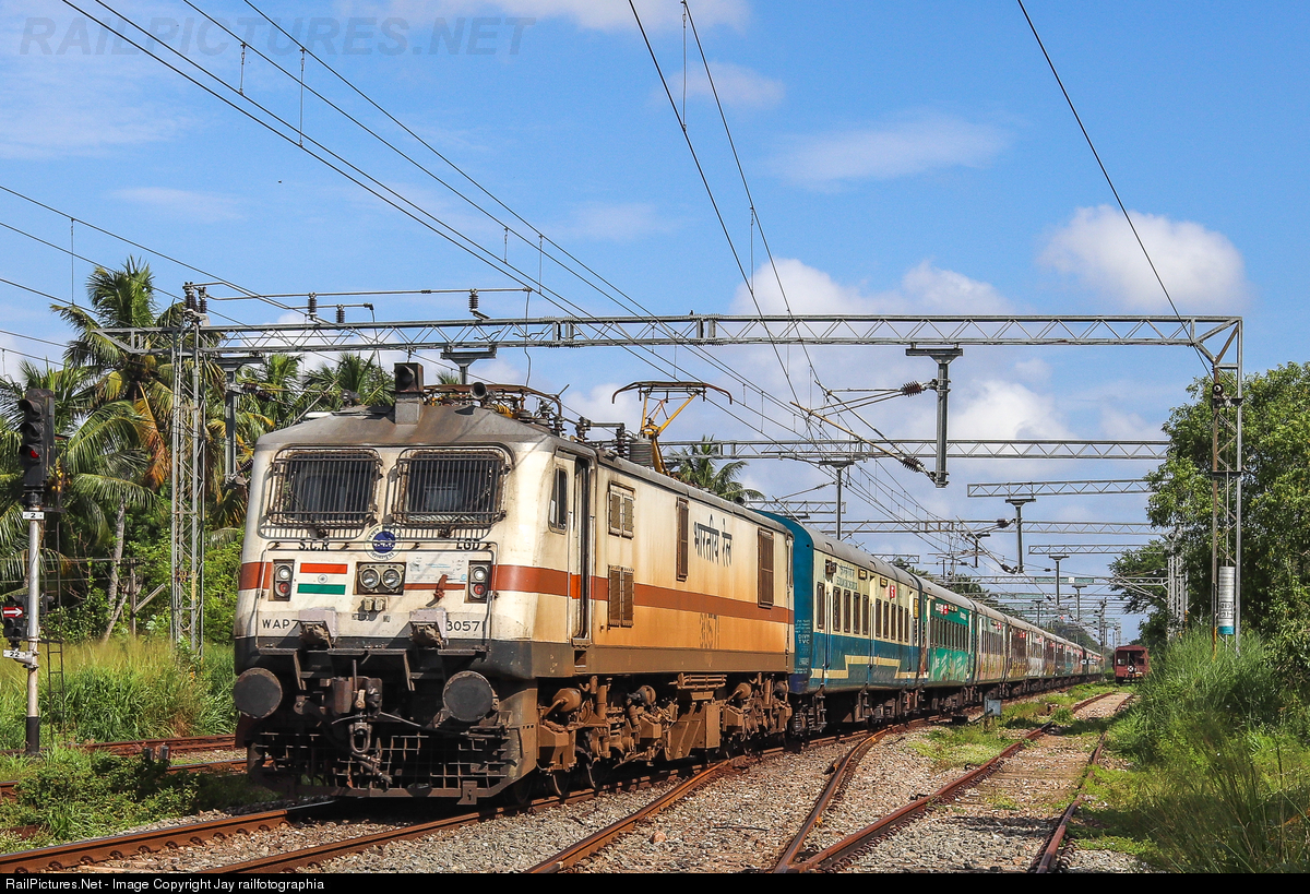 Having a late start, Jan Shatabdi Express rips through Kochuveli with Medha hotel load equipped LALLAGUDA WAP-7 on late afternoon