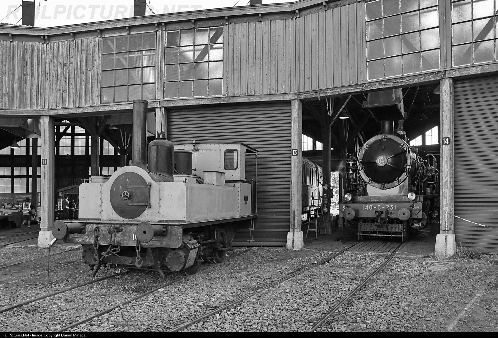 Steam 020 & 140-C-231 are exposed in the Ajecta roundhouse, 140-C-231 is prepared for a run to Villiers Saint-Georges with 5 passengers cars.