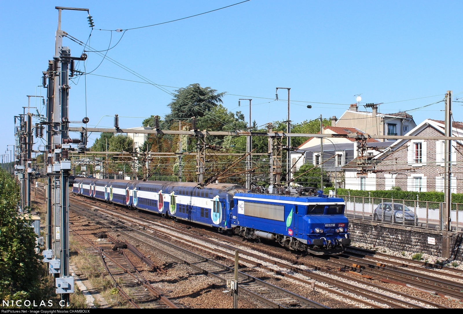 | The BB22218 belongins to the PAC Transilien unity, hauled this parisian suburban train (VB2N) from Nevers were she was maintain, to the EPTIC maintenance center of Paris-Batignolles. The train is about to crossing the station of Maisons-Laffitte with -7mn of advance. |