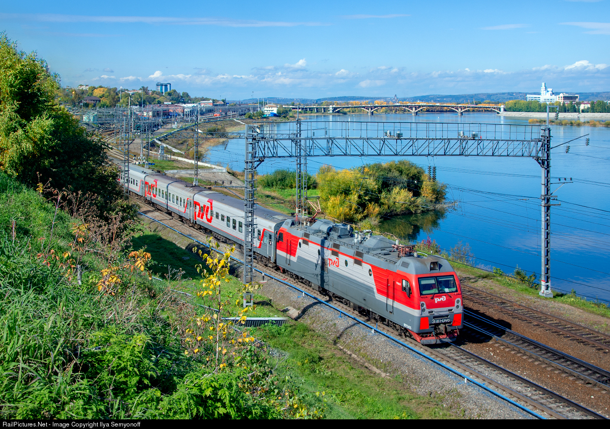 Passenger train goes along Angara river in Irkutsk city. The Angara River is a 1,779-kilometer-long (1,105 mi) river in Siberia, which traces a course through Russia's Irkutsk Oblast and Krasnoyarsk Krai. It is the river that drains Lake Baikal and is the headwater tributary of the Yenisei River.