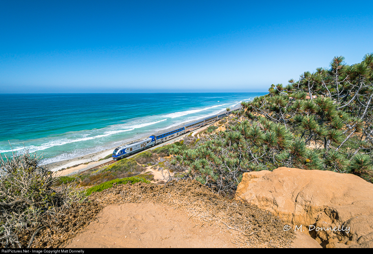 A Pacific Surfliner train rolls along its scenic namesake.