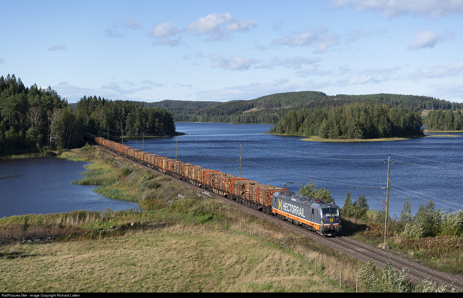 Hector Rail Vectron 243 111 with wood train 41612 Kongsvinger (NO) - Skoghall (Karlstad) at Björkenäs (SE).