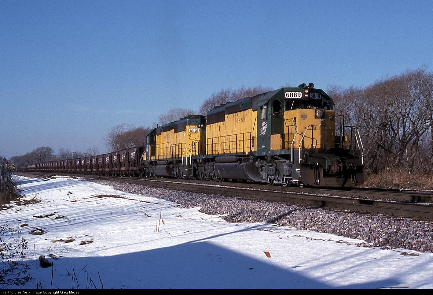 CNW 6889 brings an ore train thru Bayview (the Milwaukee, WI area one, not the famous Canadian one), in January of 1990. This seasonal ore train was loaded in the iron ore range of Minnesota and is destined for interchange with the EJ&E in the Chicago area. These trains didn't run every year so they were a welcome change to the usual coal train or regular manifest. This is my old stomping grounds as I grew up only a few blocks east of this location.