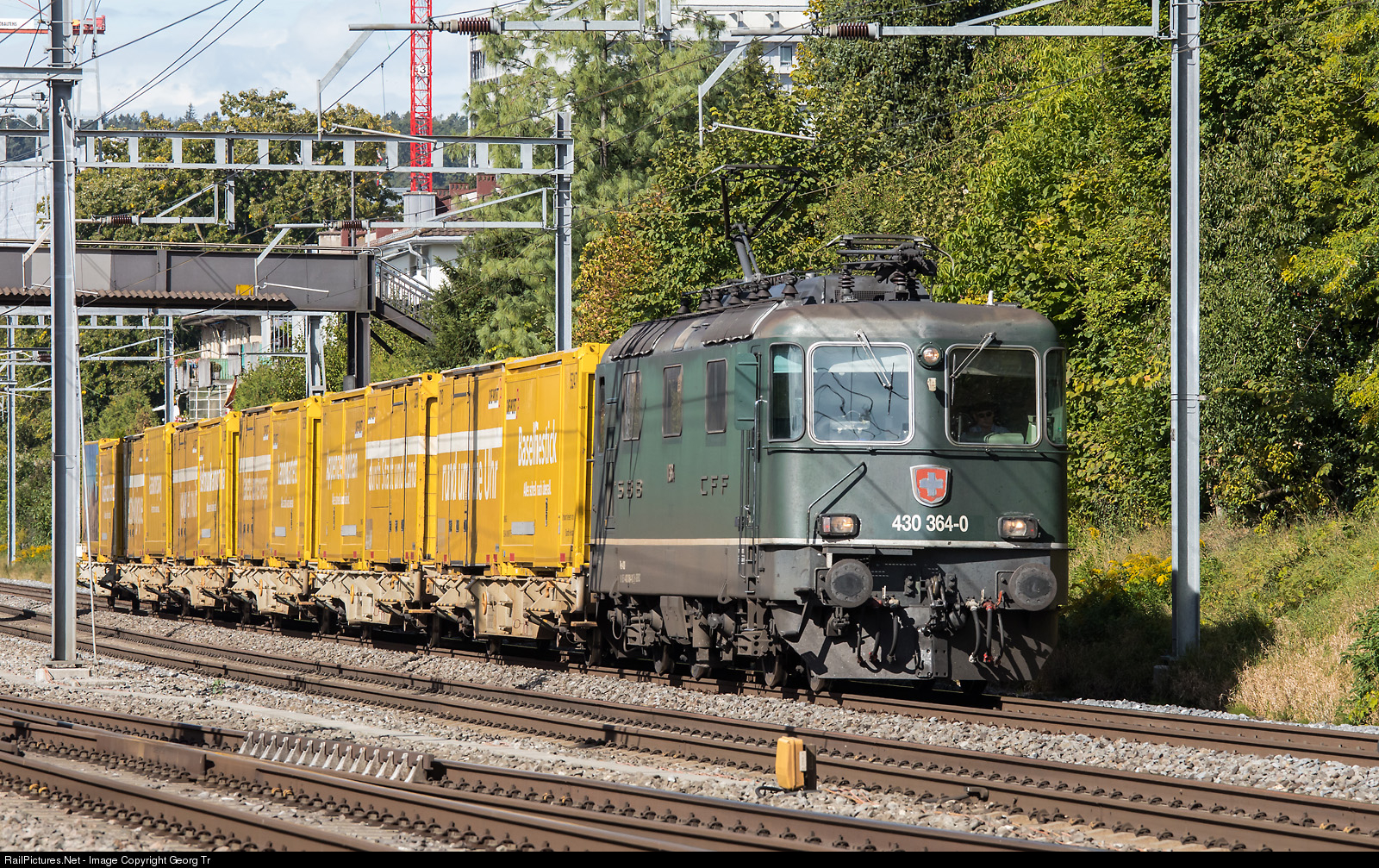 | The only green Re 4/4 III (Re 430) # 364 is pulling the mail train 50069 from Härkingen to Frauenfeld mail station, in Schwalmenacker between Winterthur and Oberwinterthur. |