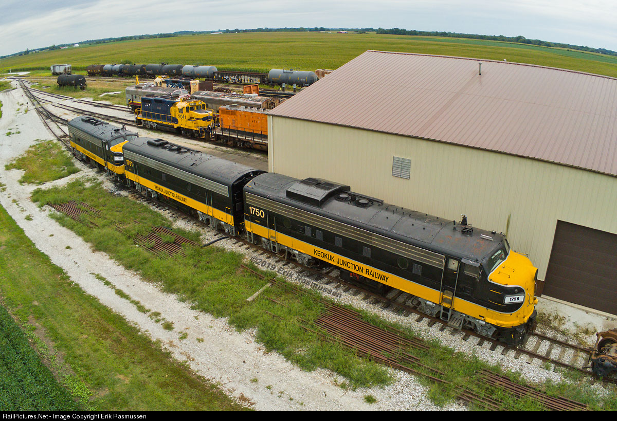 Various first and second generation EMD's await an uncertain fate at Keokuk Junction's shop facility. A new investment group in charge of the railroad has sidelined the famous matching set of A-B-A covered wagons.