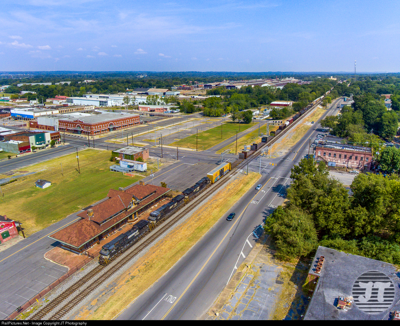 | NS 9673 rolls south past the ex-Southern Railway Bessemer Station. The large mill in the background was a Pullman Standard factory that ceased production in the 90's (by that time it was a part of Trinity Industries). It is now used by BLOX. Not to knock Bessemer but it does rank most dangerous city in Alabama and one of the worst cities to live in (according to the Wall Street Journal) so watch your surroundings if you are in the area. |