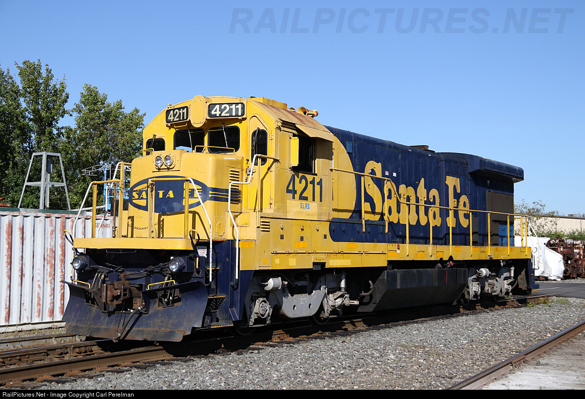 SLRS 4211 has just finished switching Pureland Industrial Park. The locomotive retains its original Santa Fe lettering and road number.
