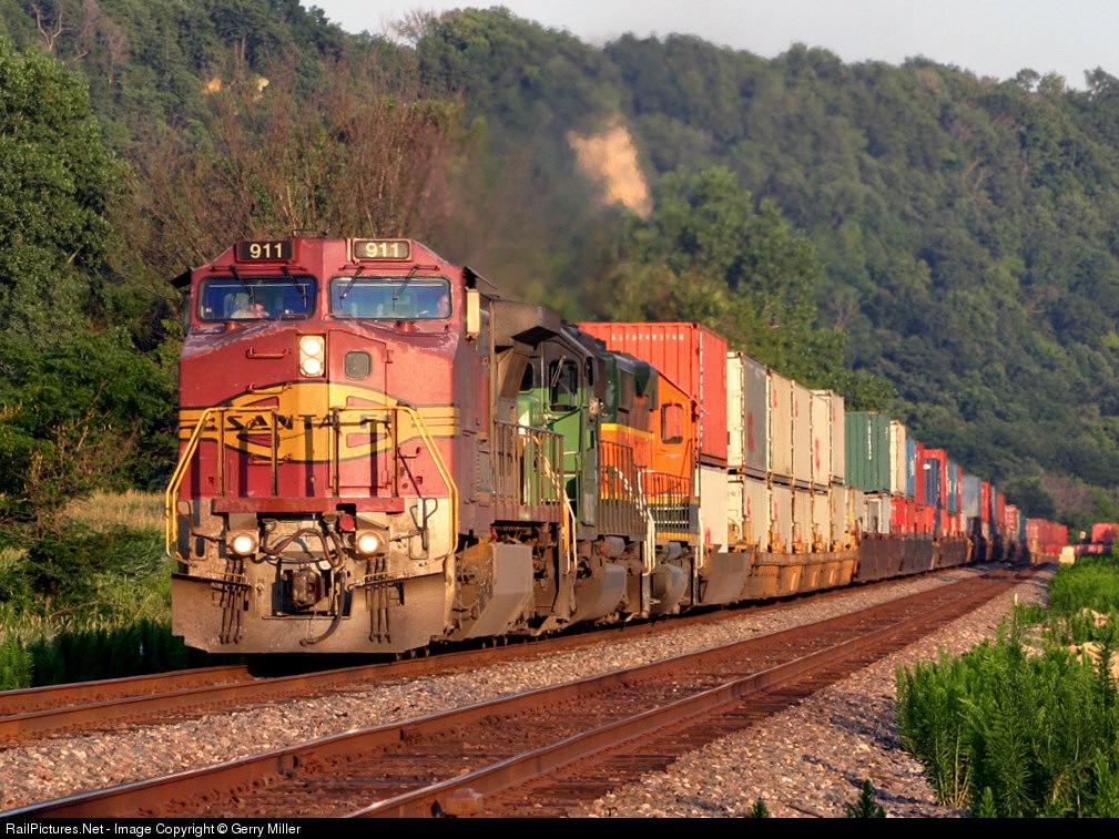 RailPictures.Net Photo: ATSF 911 Atchison, Topeka & Santa Fe (ATSF) GE C40-8W (Dash 8-40CW) at Potosi, Wisconsin by Gerry Miller