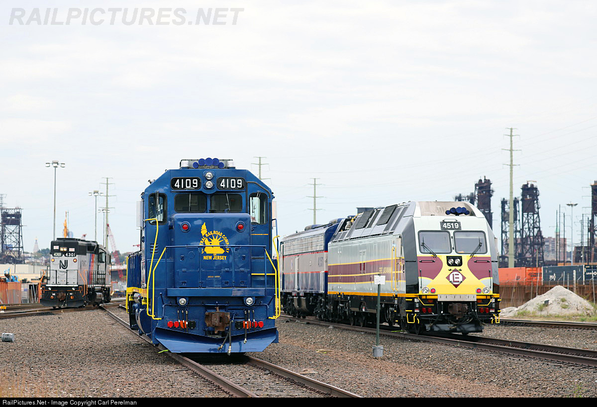 | Two of three NJ Transit heritage locomotives pose for photos at the Meadows Maintenance Complex. NJ Transit GP40PH-2 4109 has been restored into its original Central Railroad of New Jersey livery while a wrap has been applied to Dual Model 4519, converting it into an Erie Lackawanna livery unit. Special thanks to the dedicated employees at the Meadows Maintenance Complex for making the Heritage fleet possible. |