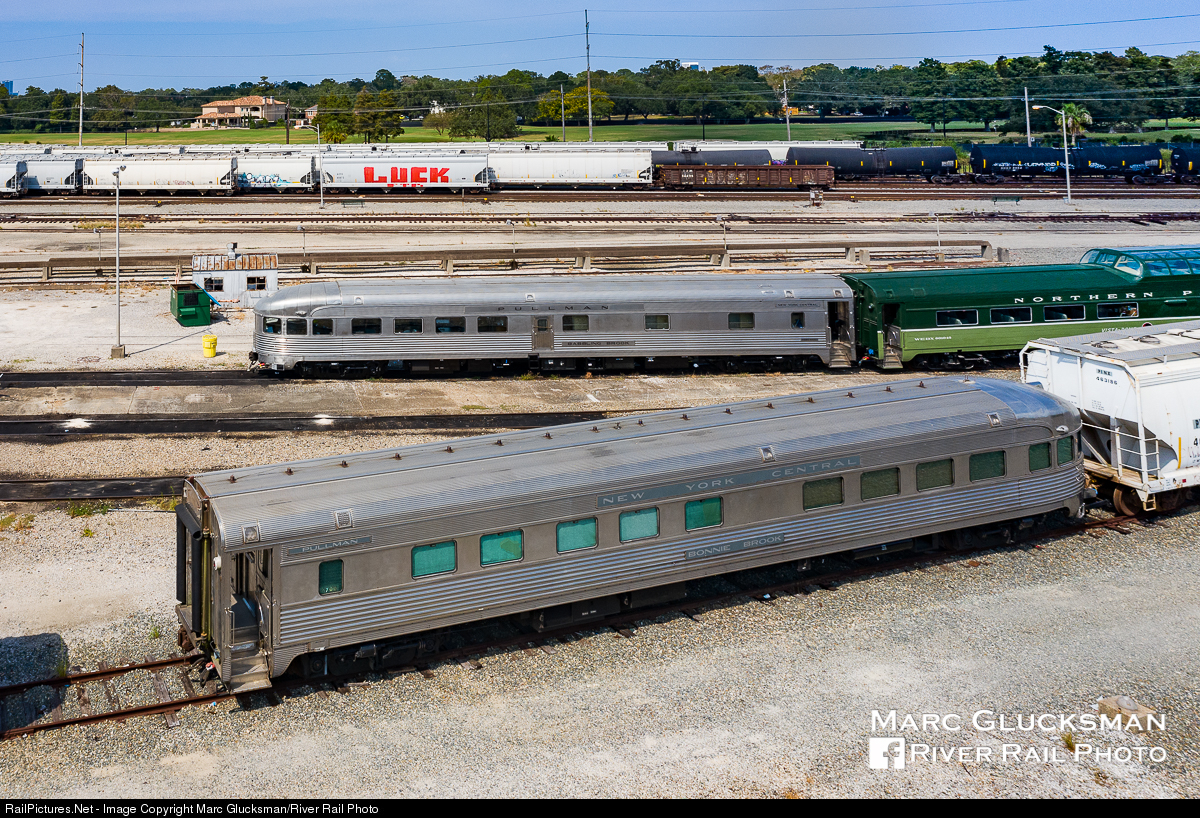 Luck was a part of this picture. As Webb Rail LLC - WEBX's former New York Central "Babbling Brook" (obs/lounge/sleeper) departed from its recent rehab, the New Orleans NRHS owned sister car "Bonnie Brook" was parked nearby for a passing meet. Although a car in the background proclaims "LUCK" this shot had actually been planned for years, but luck gets credit for the lack of rain at the very least.