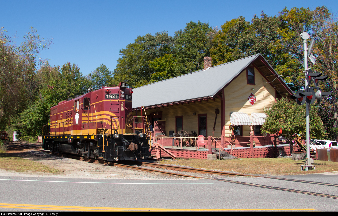 The 1921 light engine on a rare equipment move between Meredith, NH and Lincoln, NH. The 1921 doesn't run very often because it is a backup to a backup engine.