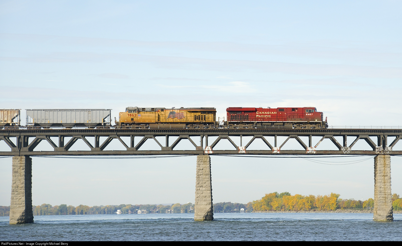 CP 8897 & UP 7862 lead empty ethanol train CP 651 over the St. Lawrence River.
