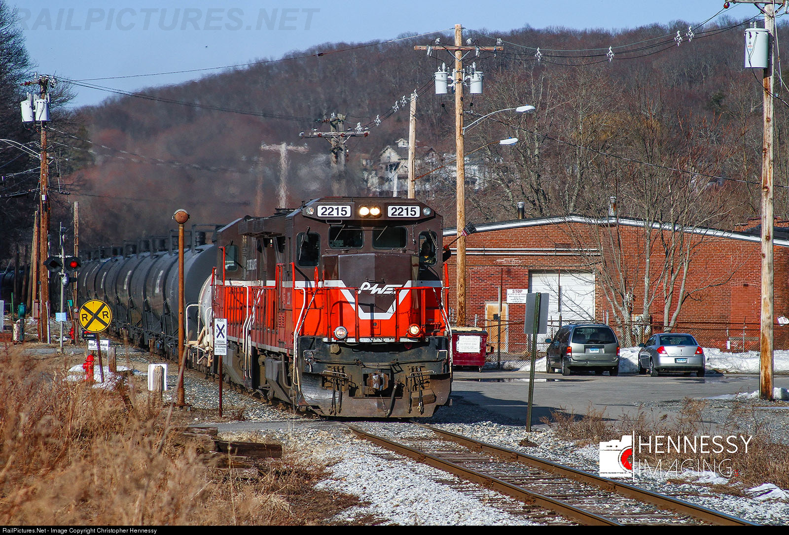 | NECR 608 with P&W power on a run through ethanol train heads past some abandoned buildings in Norwich. This train ends up in New London, CT for pick up by Providence and Worcester crews to take to Motiva in the port of Providence via Amtrak's Shore Line. |