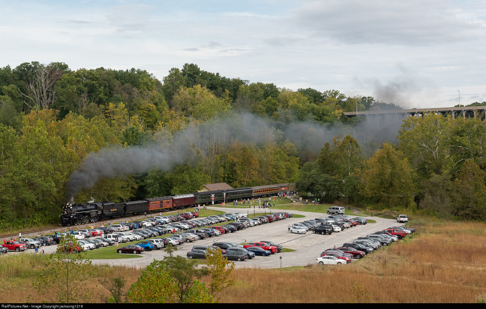 NKP Berkshire number 765 was back for the 2019 edition of the CVSR's "Steam in the Valley". Here we see 765 working hard as it passes through Brecksville Ohio.