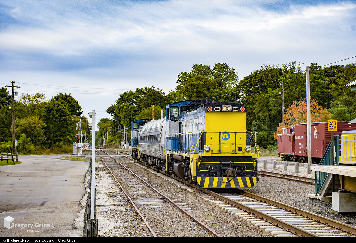 One of the Federal Railroad Administration's several inspection railcars pays a visit to Long Island Rail Road in the form of DOTX #216. This car made trips on all of LIRR's lines, testing all main tracks. This day (10/1/19) they covered LIRR's Main Line to Greenport. The train is seen pulling into Greenport Station, which is the most eastern point on the Main Line.
