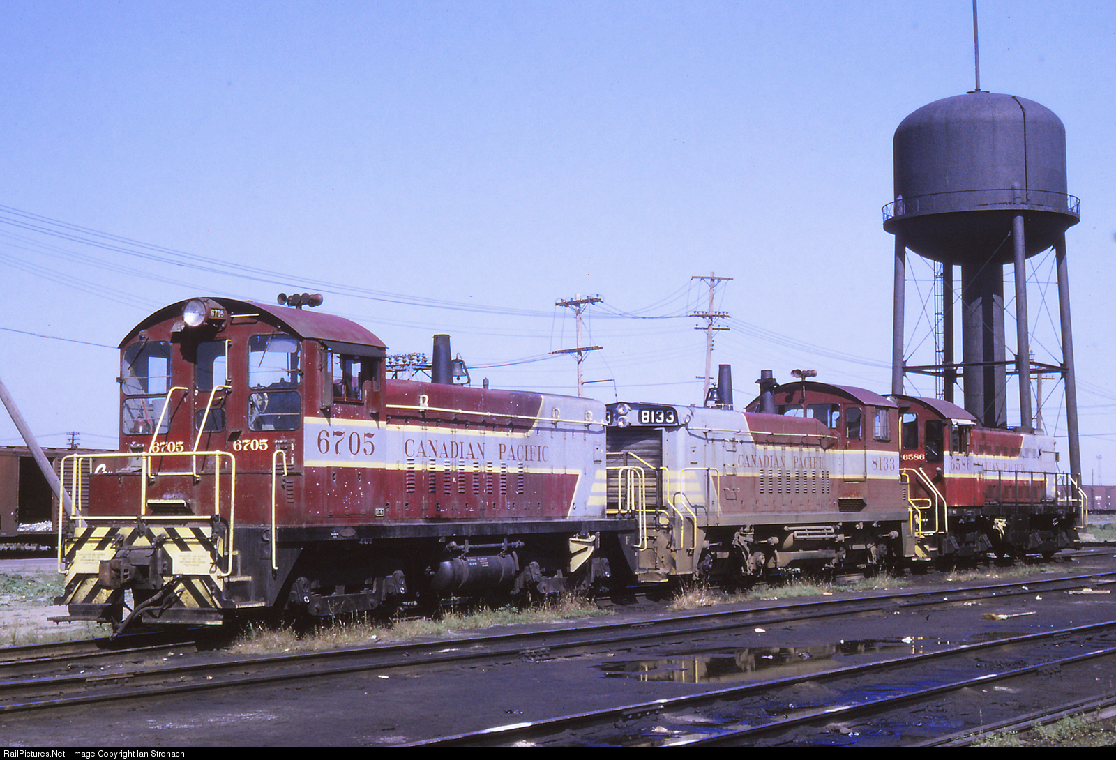 | CP had ten SW-8's, 72 SW1200RS's and 101 S-3's. The SW1200RS was actually a road switcher with its Flexicoil trucks, referred to by CPR as a Branch Line Unit. The 8133 was one of ten (8131-8140) assigned to CPR's Dominion Atlantic Railway in Nova Scotia. The SW1200RS's were all delivered with "suicide handrails", which were changed to frame mounted ones like on the Alco switchers in the late 1960's and early 1970's. |