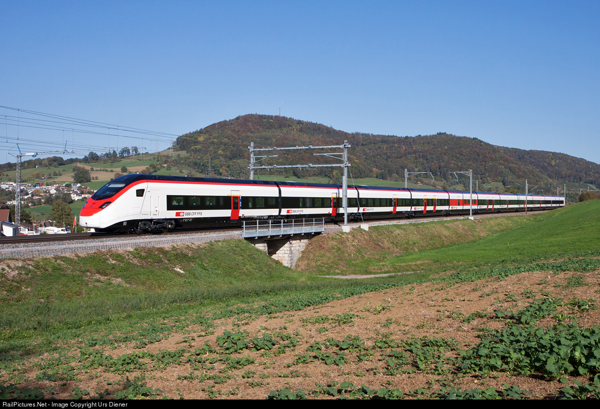 | New SBB highsped trainset RABe 501 013 "Giruno", built by Stadler Rail, on the way to Stein Säckingen after some test runs in the south part of Switzerland. |