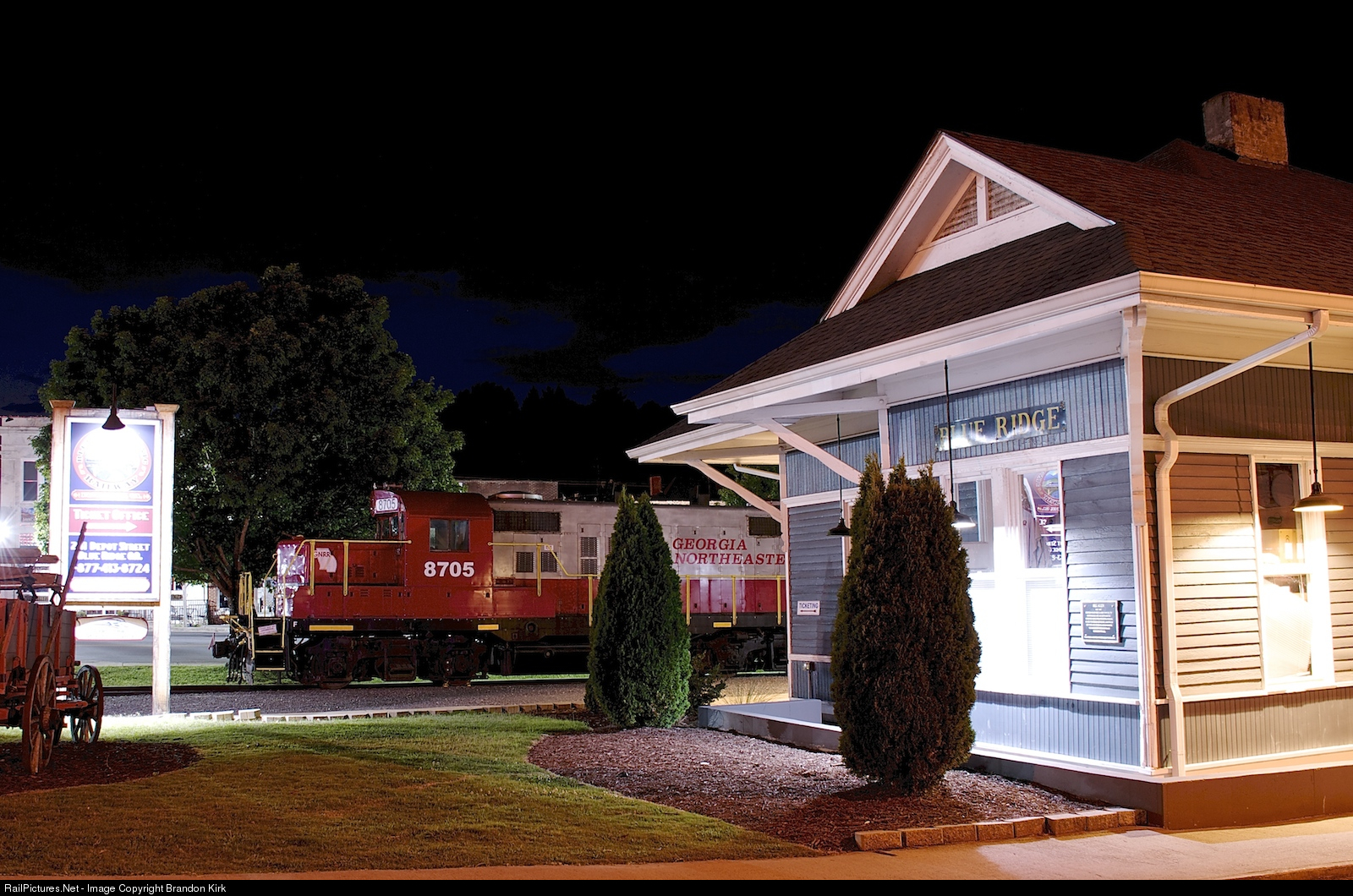 After another days journey of the Blue Ridge Scenic Railway, the train resides next to the restored depot, awaiting the next days trip. Sightseers will board at 11:00am and travel to the towns McCaysville, GA and Copperhill, TN were they will stay for 2 hours and then arrive back in Blue Ridge at 3:00pm.