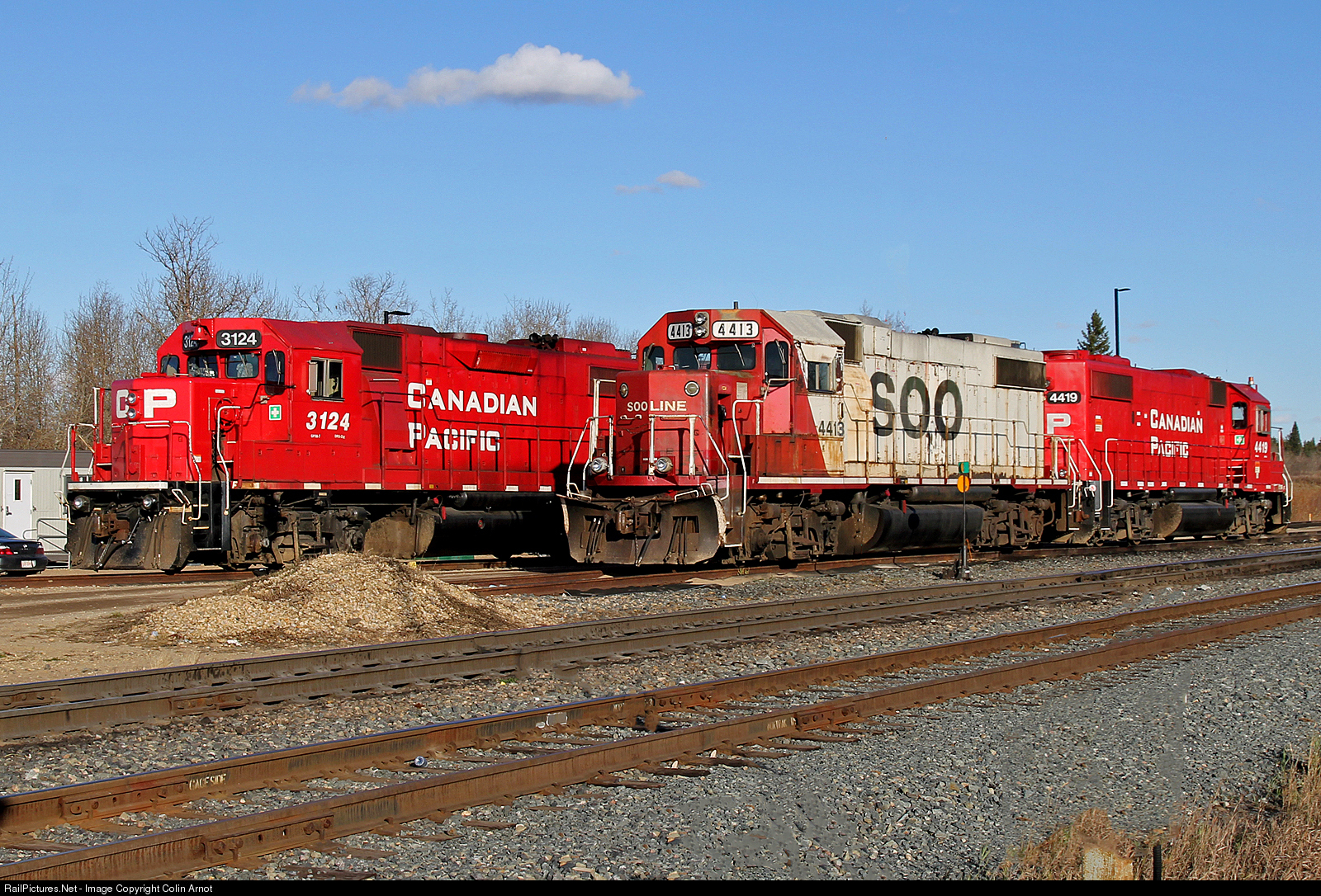 CP's Scotford Yard sees a pair of ex SOO Line GP38-2s. 4413 still in SOO livery and 4419 repainted to CP colours.