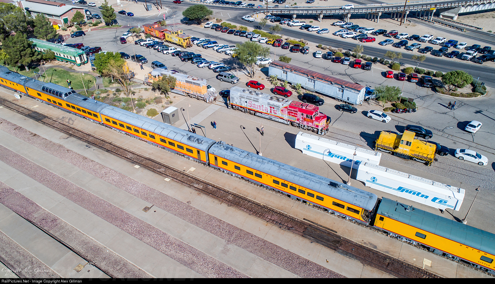 A Steam Excursion Veteran Watches From the Side. As UP 4014's Rail Giants Train Museum excursion basks in the morning light at the original ATSF Barstow station, the back half of its train sits nearby the Western America Railroad Museum's equipment. One of these pieces, the ATSF 95, is no stranger to mainline steam excursions here at Barstow. After being delivered to the Santa Fe in 1967, No. 95 (originally number No. 105) would lead some of Santa Fe's finest passenger trains before moving to freight. Twenty-four yeas later, however, the locomotive found itself as part of the motive power of a passenger train once again - this time behind a steam locomotive. On December 27, 1991, ATSF 95 embarked on a four-day round trip behind the newly restored Santa Fe 3751 as the 4-8-4 Northern triumphantly led the California Limited. The steam special traveled to Bakersfield via Cajon Pass, spending the night in Barstow before traversing Tehachapi Pass. Today, some 28 years later, ATSF 95 now watches from the sidelines here as another mainline steam excursion calls on Barstow.