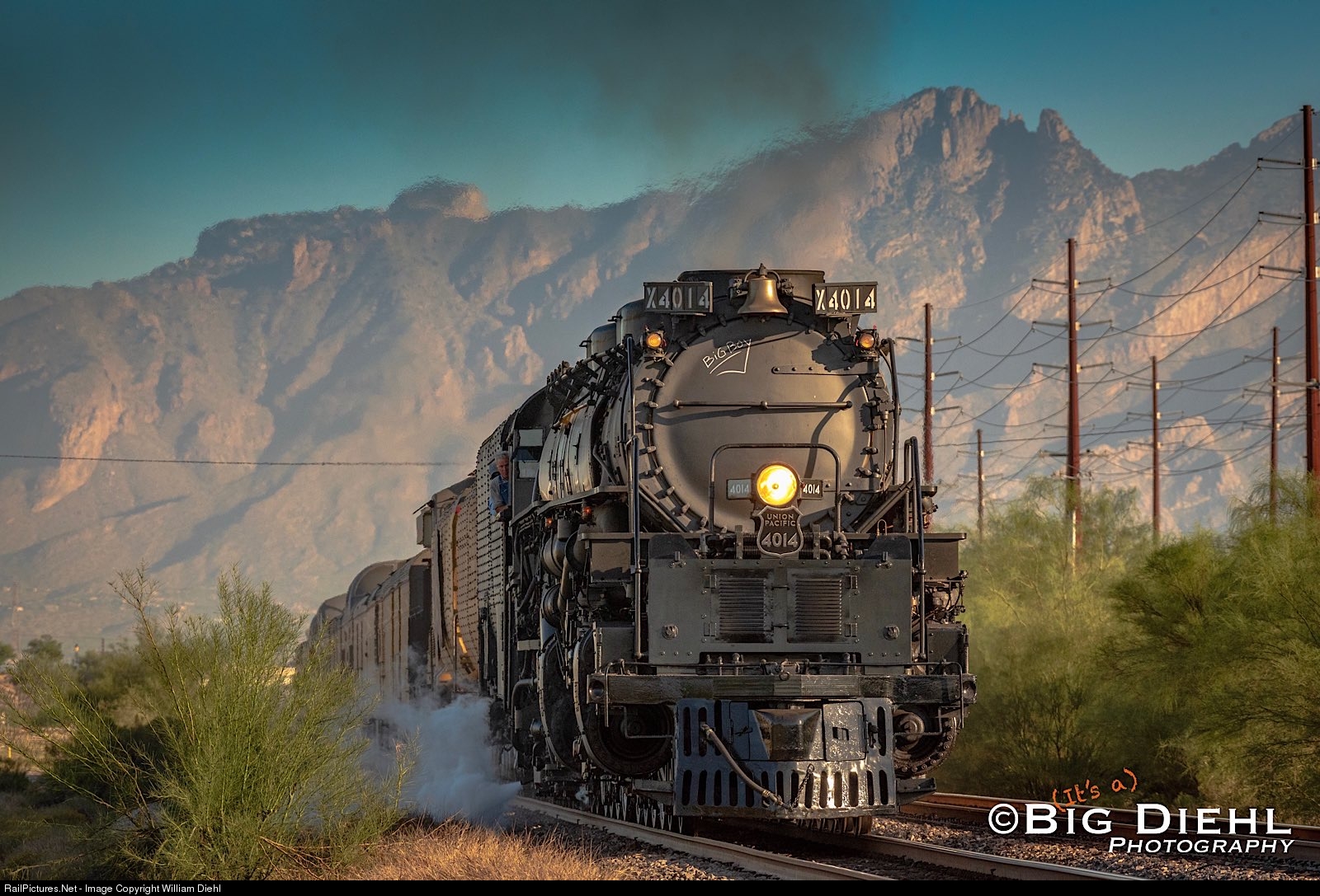 Today, we find the recent fuel oil convert, Union Pacific 4014, with no need for the coal towers that appeased the Gila Monsters heading eastward underneath the unmistakable prow of the Santa Catalina Mountains in Tucson.