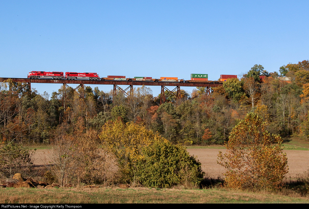 | With fall colors starting to emerge in southern Indiana, INRD SAHW heads over Tulip Trestle, led by INRD 9007. |