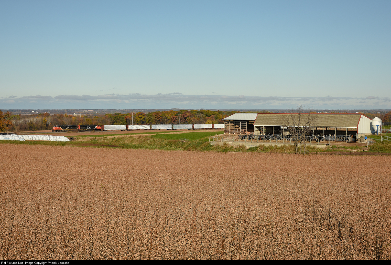 CN 2330 leads a southbound past a dairy farm near Byron, Wis. 10/24/19