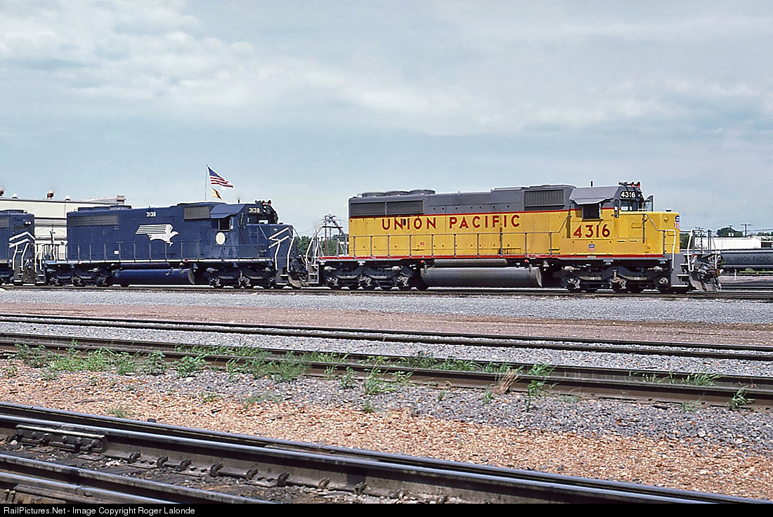 | UP SD40-2 4316, Ex-Missouri Pacific 3316 not equipped with dynamic braking. |