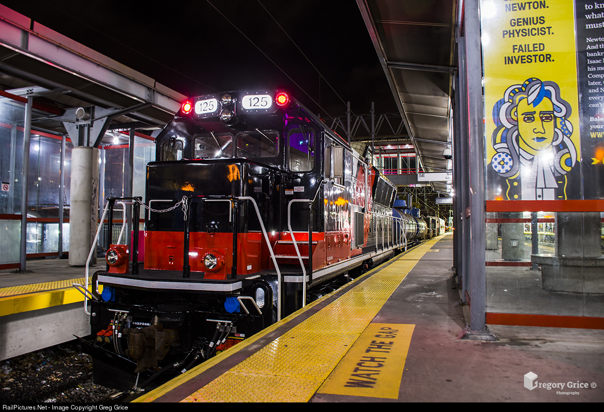 "CTrail Water World at Stamford" Metro North's "Water World 1" holds on Track 5 at the Stamford Transportation Center with CDOT BL20GHM 125 leading. "Water World" is Metro North's rail washer tasked with spraying leaf residue off the rails throughout the electrified territory, mainly the Harlem & New Haven Lines. This Water World set consists of a Cab Car, Sprayer Car (old caboose), 2 water tanks and a BL20GHM for power. The 125 was a BL20GH, originally built by Brookville Equipment Corporation in 2008. After years of service, Metro North & CDOT contracted Motive Power Industries (MPI) to rebuild the BL20GHs starting with the 125. This rebuild included the swapping out MTU-Detroit Diesel 12V4000 for a more reliable Cummins prime mover and upgrading several other components on the engine. For the CDOT owned engines the rebuild also called for repainting the locomotives in CDOT's new "CTrail" scheme.