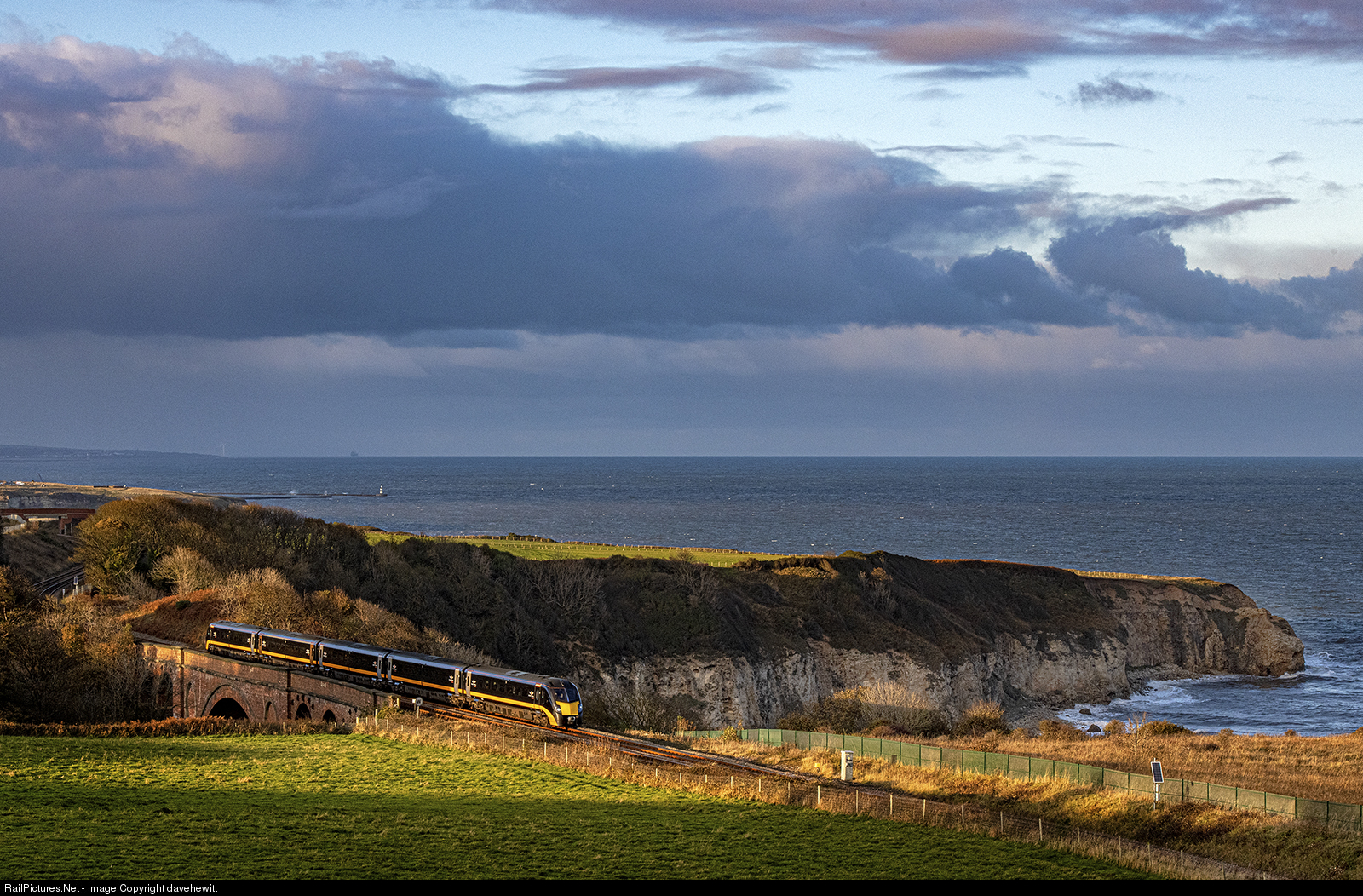 Sun is setting behind the hill behind me as a class 180 crosses Hawthorn Dene with the 15.30 Sunderland to Kings Cross train