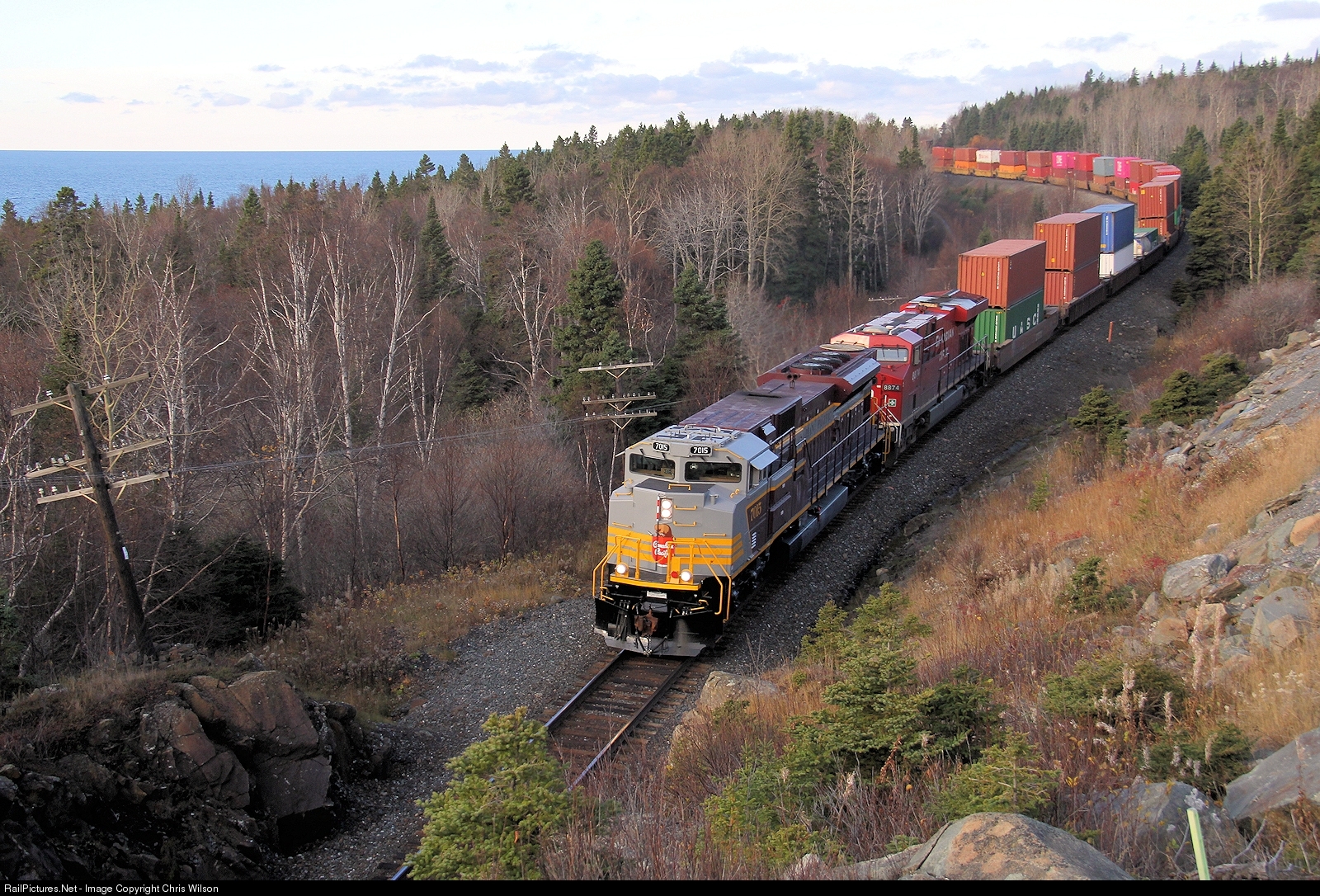 New CP SD70ACU 7015 painted in CP's Heritage Block scheme leads 100's train along the North Shore of Lake Superior