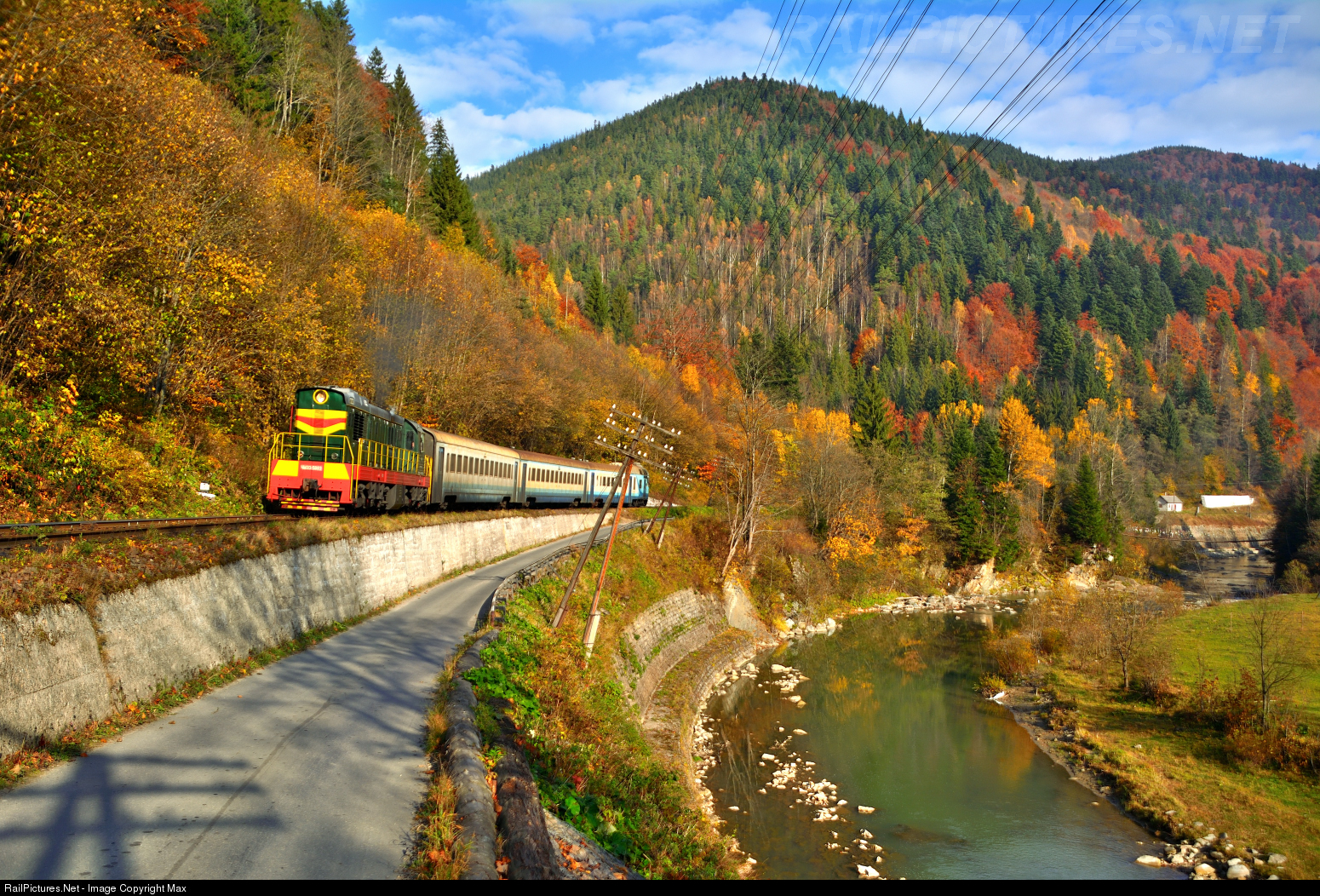 CzME3-5893 with local passanger train number 6441 from Kolomyja to Rakhiv caught between Mikulchin and Tatariv.