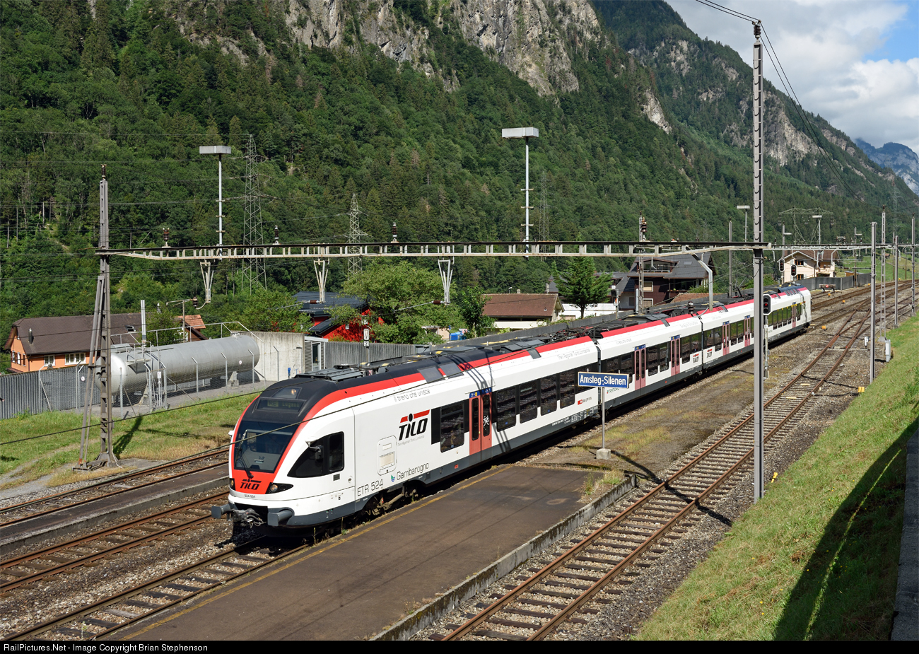 | After taking photographs on the Gotthard line for over 55 years I finally got to take a photo at Amsteg-Silenen station last July of one of the SBB Tilo Stadler 'Flirt' EMUs that provide the only normal passenger service over this stunning railway now. |