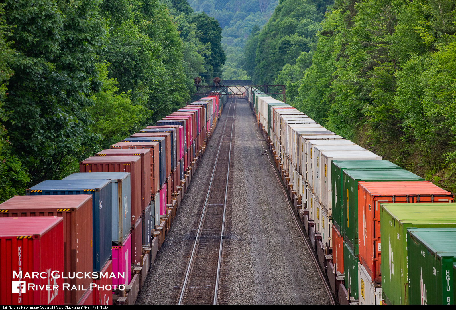 Who needs an engine? Sometimes its nice to get a little creative with the rest of the train! On Sunday, June 9, 2019, Norfolk Southern Corp intermodal trains 23M and 20Q pass under the signal bridge at Auto 256 in Cassandra, PA, matched with unmatched double stacks. This scene would be permanently altered the next day as all four of the commonly visited signal bridges on the west slope (252, 254, 256, and 263) and the bridge mounted poles at 257 would be removed. Their elimination had been originally scheduled for the morning of June 9, but a derailment to the west disrupted that plan, allowing for a proverbial one day stay of execution.