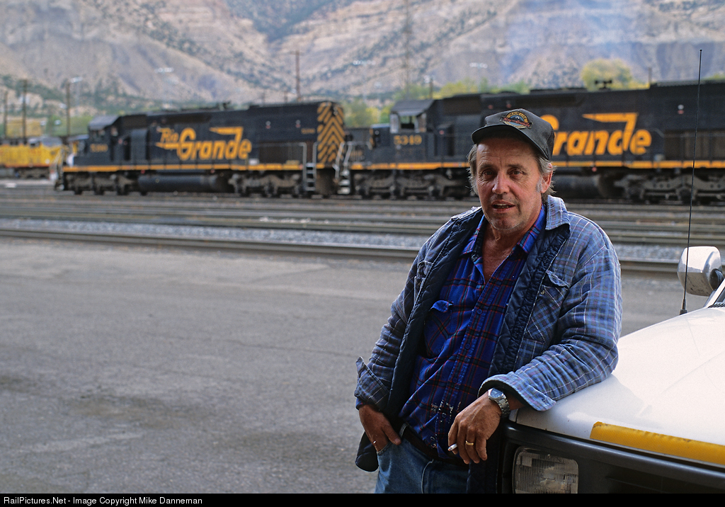 Engineer Mel Baughman pauses outside the depot at Helper, Utah, with Rio Grande SD40T-2 “Tunnel Motors” sitting in the yard behind him on October 5, 2004. Mel was born in Rifle, Colorado, on November 2, 1948, and began working for the Rio Grande in 1967. Later becoming an engineer and retiring after 41 years with the railroad—he still called Helper, Utah—home. He passed away on November 2, 2017, on his 69th birthday.
